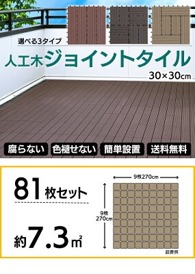 【19日迄★条件達成でポイント最大+4倍】ジョイントタイル 並行溝付 ブラウン 81枚セット 送料無料 ウッドデッキ ウッドタイル ウッドパネル パネルデッキ フロアデッキ 人工木 ベランダ バルコニー ウッドデッキウッドパネル ウッドデッキ人工木 全3色【D】 【AK】楽天