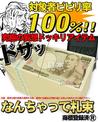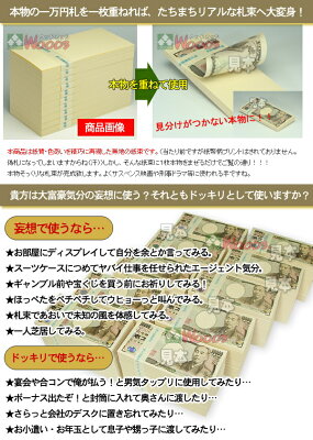 一番上に本物紙幣を挿し込む事で、【見た目は、100万円の束】 といった、バラエティ商品です!! もったいないけどメモ帳としてもお使い頂けます。